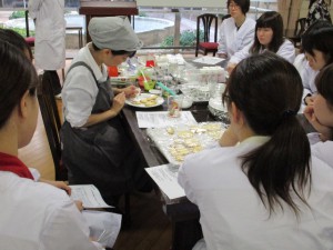 フードデザイン学科1年生『製菓・製パン演習』の授業で、シュガークラフトを体験しました。特別講師で管理栄養士でもある本学卒業生の上野ゆみ先生に指導していただき、クッキーにアイシングやアラザンなどを飾りました。