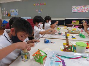 朝倉の豪雨災害についての学びや風鈴作り、砂場で川作りなどを行いました。夏の思い出がまた一つ増えましたね。