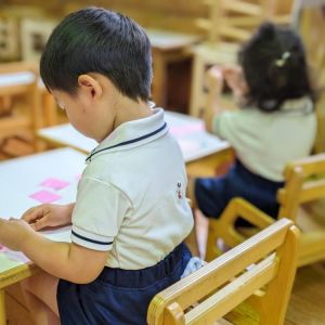 幼児期の発達の特性に合う「教具」を自ら選んで取り組むことを「お仕事」と呼んでいます。